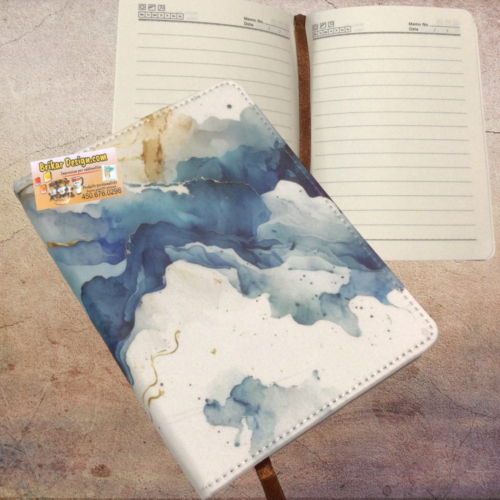 Bloc notes ” bleu” dessus en simili-cuir, iimprimer par sublimation