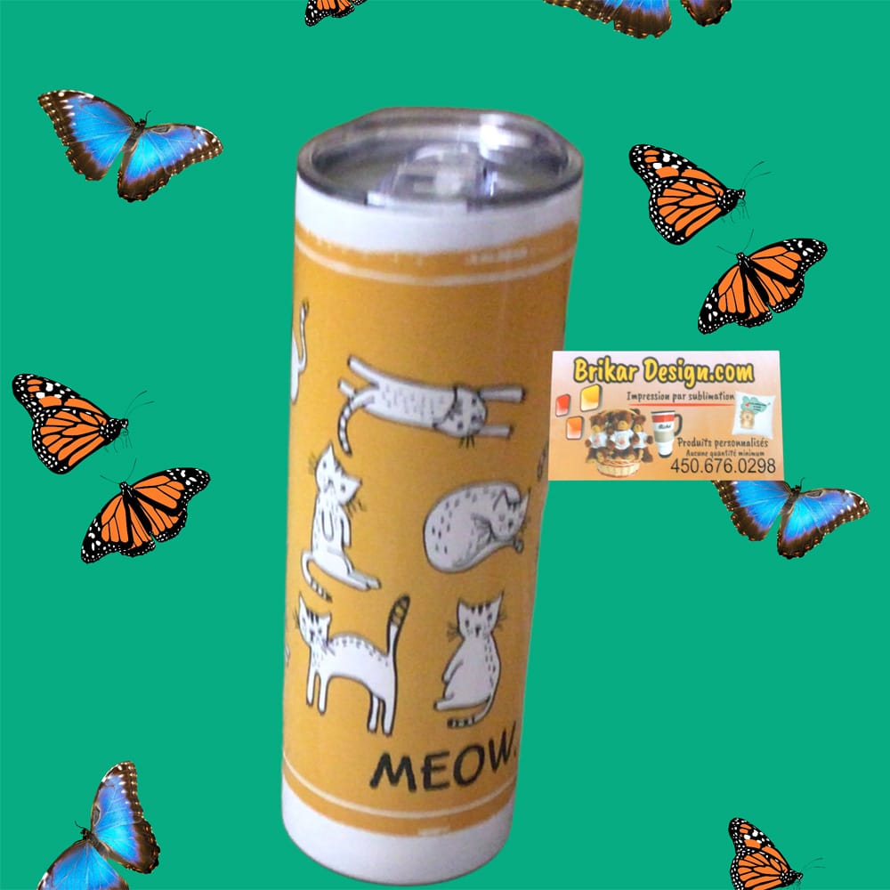 Tumbler chat 20oz avec couvercle et paille